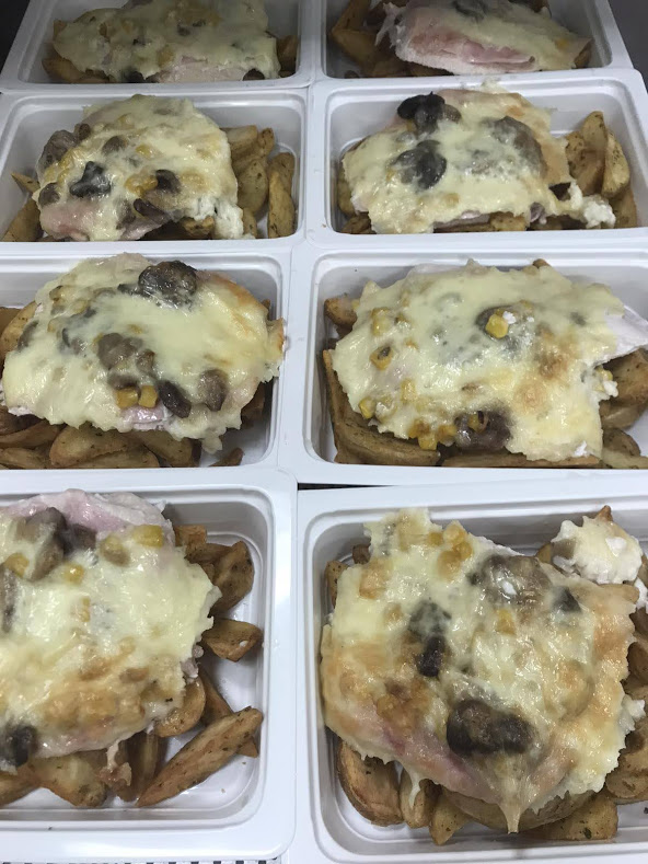 Csirkemell, Csónakburgonya, Laktózmentes TEJFÖL, SONKA, Laktózmentes TRAPPISTA SAJT, Kukorica, Gomba csiperke, Olaj (napraforgó), Bors mix. | ||||||||